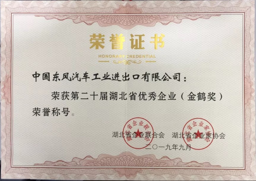 東風進出口公司獲評“湖北省優(yōu)秀企業(yè)獎”