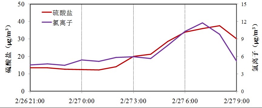 圖6 北京市PM2.5中硫酸鹽和氯離子濃度變化