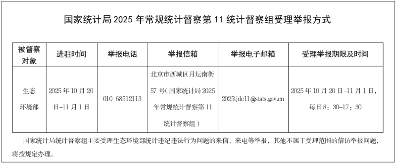 根據(jù)黨中央和國務(wù)院授權(quán),國家統(tǒng)計局2025年常規(guī)統(tǒng)計督察第11統(tǒng)計督察組近日進駐生態(tài)環(huán)境部開展統(tǒng)計督察,并于10月20日與生態(tài)環(huán)境部進行對接溝通。督察組組長、國家統(tǒng)計局黨組成員、副局長毛盛勇通報統(tǒng)計督察事宜,提出工作要求。生態(tài)環(huán)境部黨組成員、副部長李高參加對接溝通并講話。