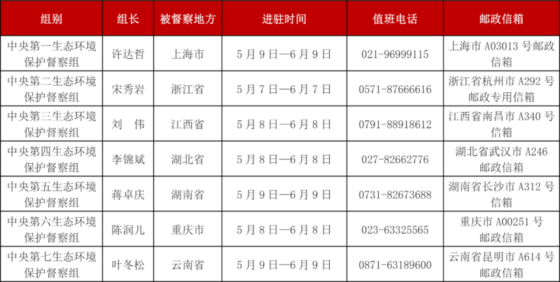 第三輪第二批中央生態(tài)環(huán)境保護督察進駐一覽表